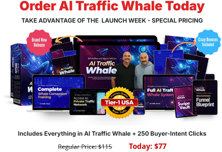 Introduction For digital marketers, the quest for reliable, converting traffic often feels like a never-ending battle. You've likely burned through budgets on courses that teach theory but deliver zero visitors, or worse, paid for "premium clicks" that turned out to be bots or disinterested users. The promise of targeted traffic that actually converts remains the holy grail. Enter AI Traffic Whale, a product that boldly claims to not just teach you about traffic, but to actually supply it. Created by industry veterans Bill McRea and Harris Fellman, this system promises low-cost, AI-filtered, buyer-intent traffic combined with the tools to monetize it. In this detailed review, we’ll dissect its features, analyze its promises, and determine if it’s the solution you’ve been searching for.